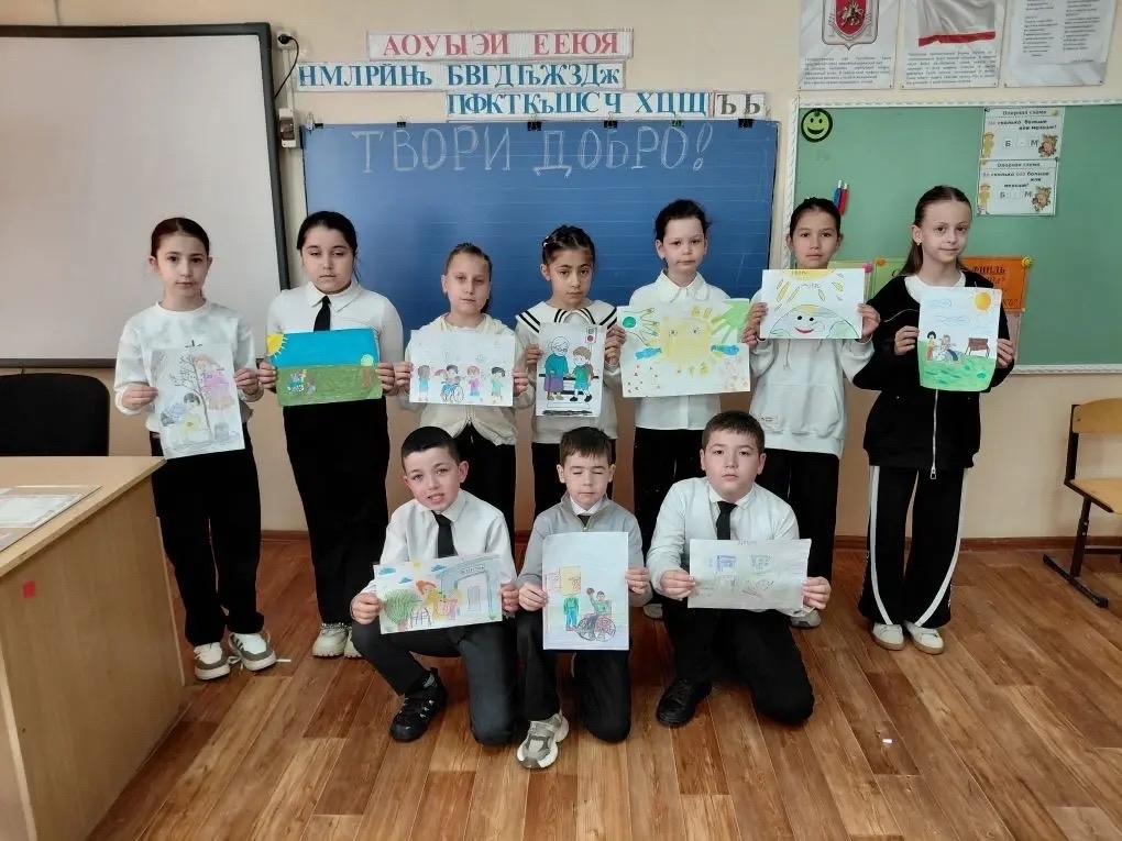 Ученики всех возрастов приняли участие в художественном проекте: они создавали рисунки, которые отражают идею инклюзивного общества. На полотнах — яркие образы дружбы, взаимопомощи и единства, где каждый человек, независимо от особенностей, чувствует себя частью большой и дружной команды.